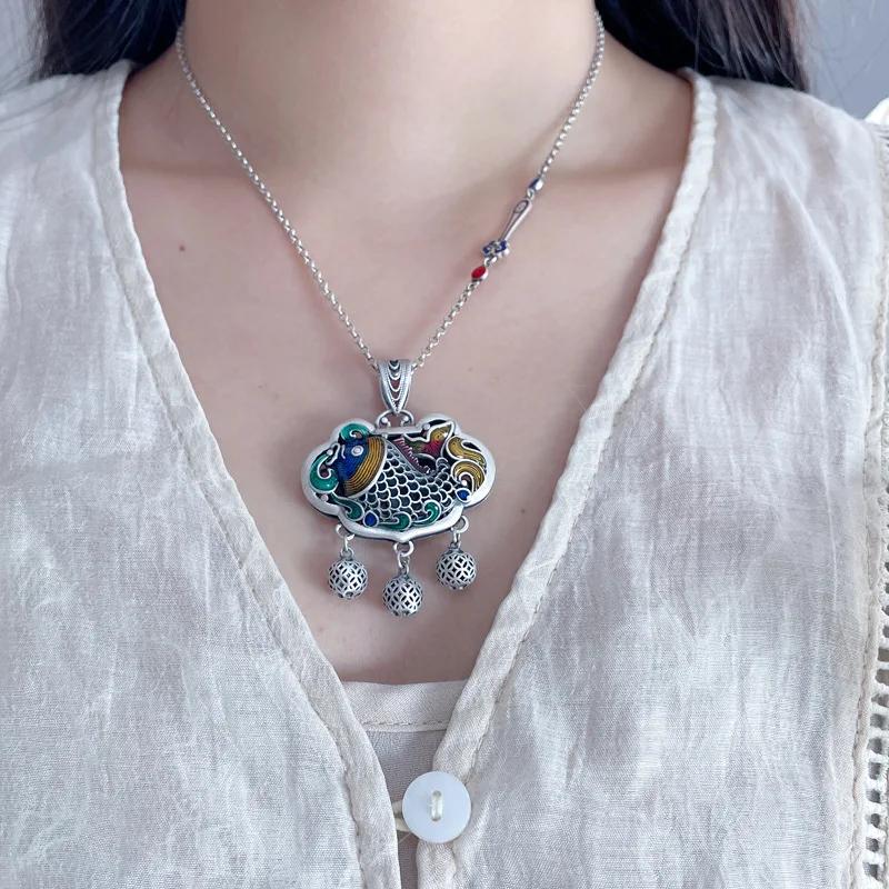 Новинка Классика Ожерелье с кисточкой в виде лотоса и рыбы карпа для женщин Этнический стиль Синий лотос Двусторонний кулон Ювелирное изделие в подарок — купить товар онлайн с бесплатной доставкой по всему миру!