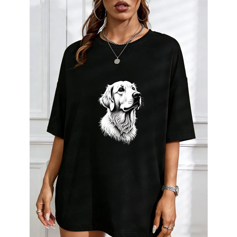Женская повседневная футболка белая с принтом собаки Золотистый ретривер для повседневной носки — купить товар онлайн с бесплатной доставкой по всему миру!