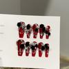 Красные Средние Ногти Гроб Накладные Ногти Квадратные Искусственные Ногти Французский Кончик Клей на Ноготь с Дизайном Многоразовые Ложные Акриловые Ногти Полное Покрытие Наклейки для Ногтей для Женщин