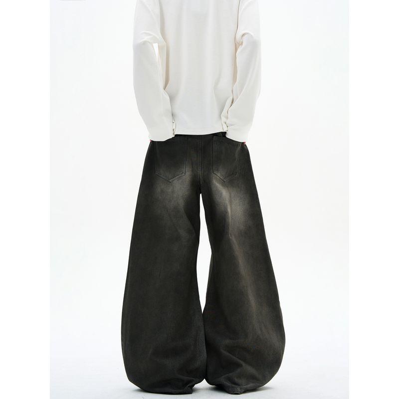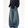 Kisko American Retro Washed Distressed Loose Scimitar Jeans Unisex Trendy Brand Cool Straight-Leg Drape Pants