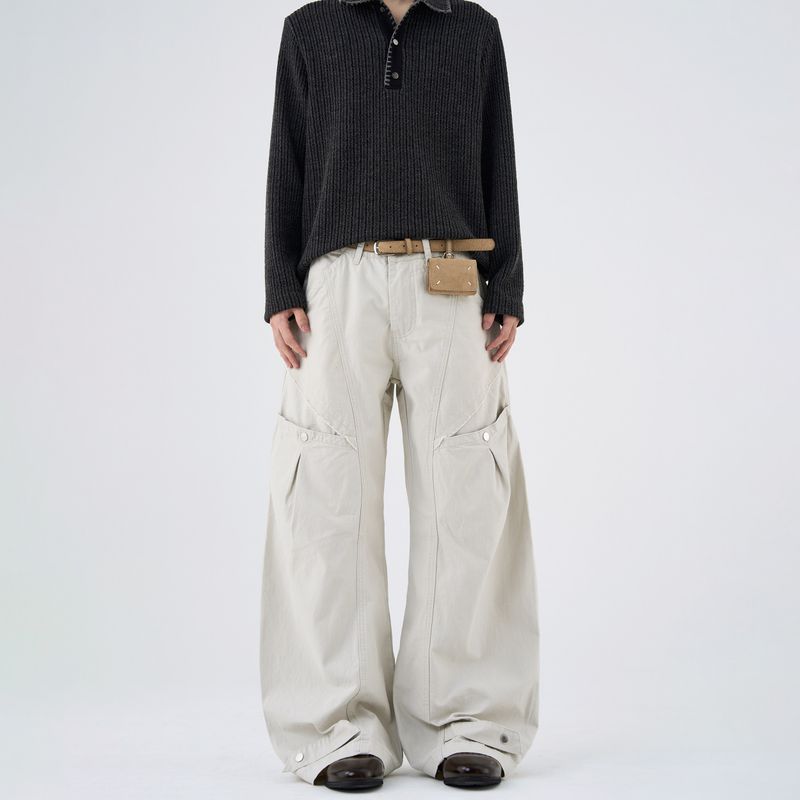 Kisko American Retro Three-Dimensional Deconstructed Design Work Pants Unisex Trendy Loose Straight Casual Scimitar Pants