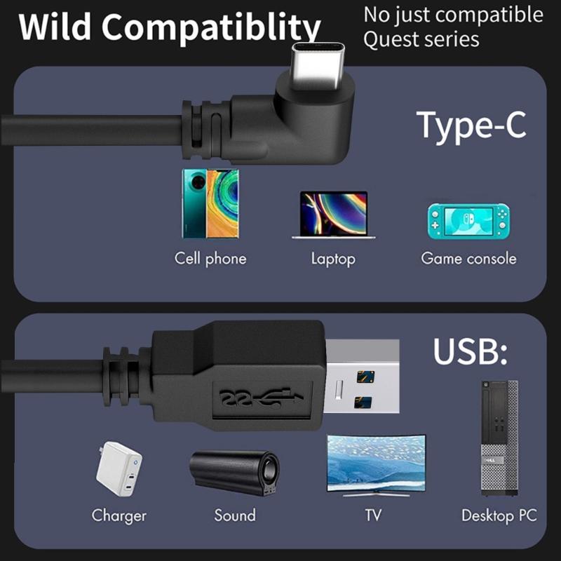 Конструкция с прямым углом 90 градусов: Интерфейс type-c имеет эргономичный L-образный дизайн для уменьшения изгиба, продления срока службы и предотвращения создания помех, легко подключается к VR-гарнитуре и предотвращает отключение во время движения.