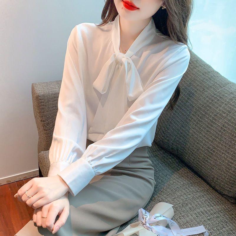 Осенняя шифоновая женская одежда Новая модная однотонная рубашка с длинным рукавом — купить товар онлайн с бесплатной доставкой по всему миру!