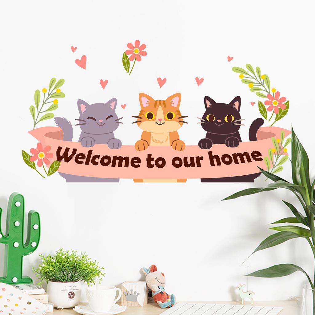 Креативный мультяшный котенок дом английский гостиная спальня детская комната домашний декор самоклеящиеся наклейки на стену