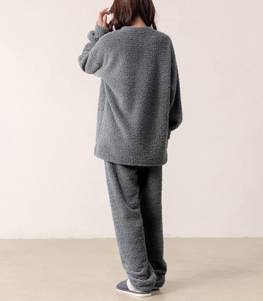 Set contents: 2-piece set (top and bottoms). Feel the comfort of a boa poodle in this loose-fitting women's round neck pullover with an elastic waistband and adjustable drawstring.