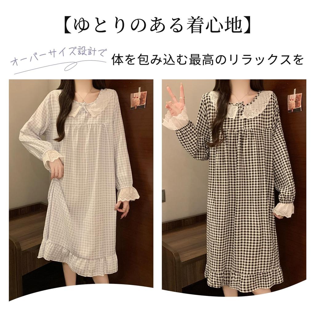 [Сочетание комфорта и функциональности] Изготовленная из приятных для кожи материалов, эта домашняя одежда идеально подходит как для сна ночью, так и для отдыха днем.. Его свободный силуэт создает милый, женственный силуэт. Он идеально подходит для весны и осени, но является полезным предметом круглый год.. Это идеальное платье для дома, сочетающее в себе функциональность и моду.