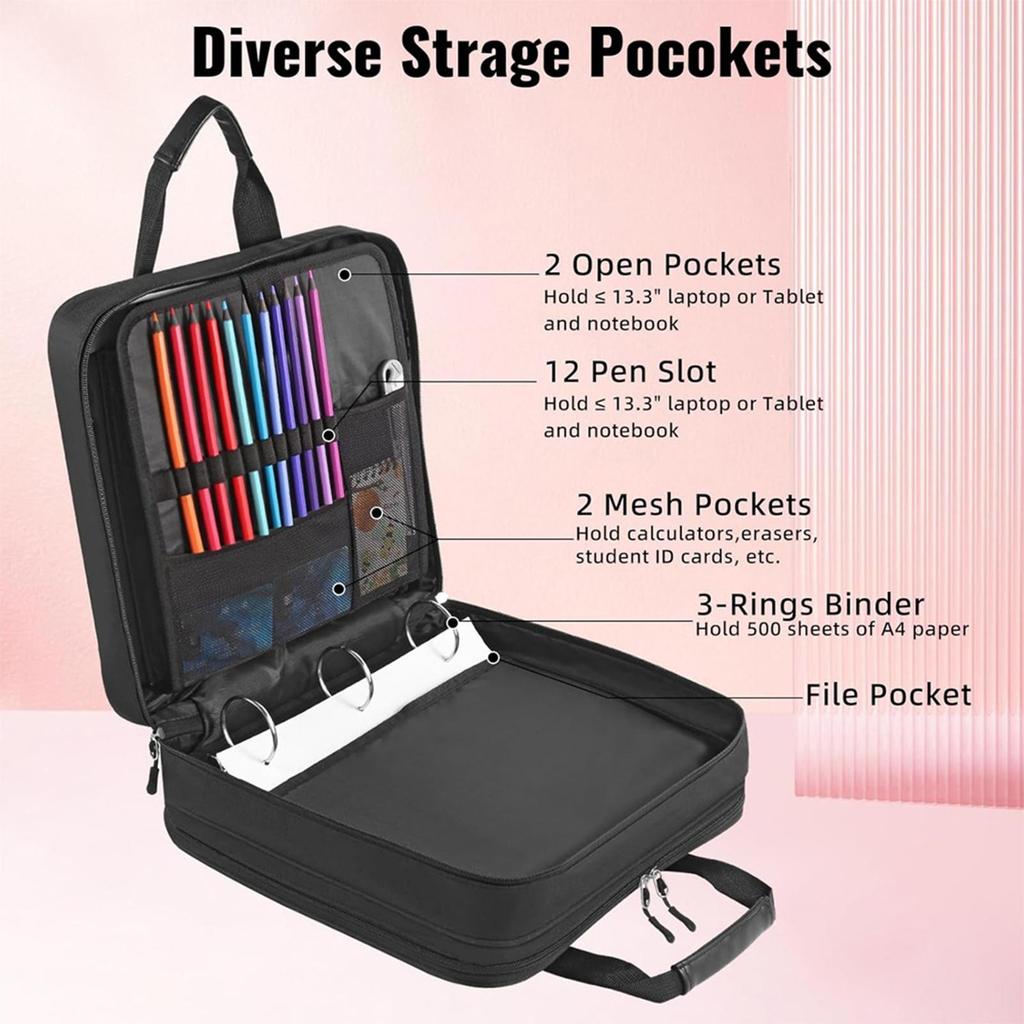 3-Ring Binder With Zipper Waterproof Oxford Binder Heavy Duty 500-Sheet Capacity Binder Bag With Multi-pockets For 13Inch laptop
