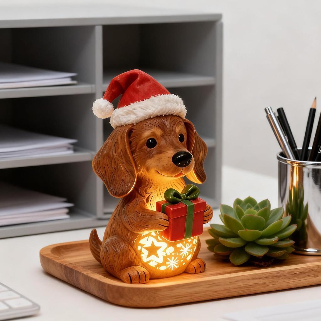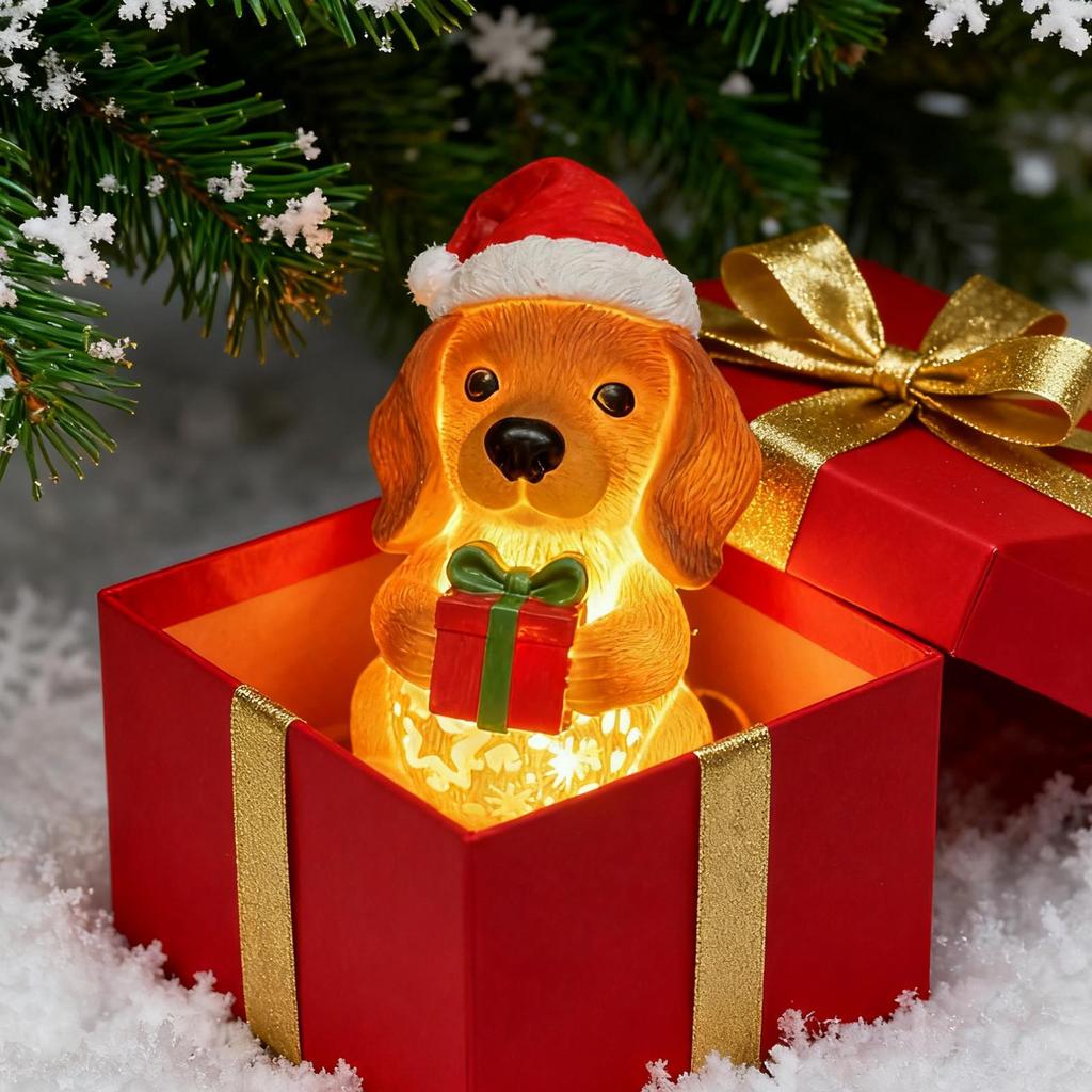 Креативный Рождественский Ночник для Собаки Светодиодное Окружающее Освещение Милый Мультяшный Щенок Статуэтка Животного Лампа Домашнее Настольное Украшение