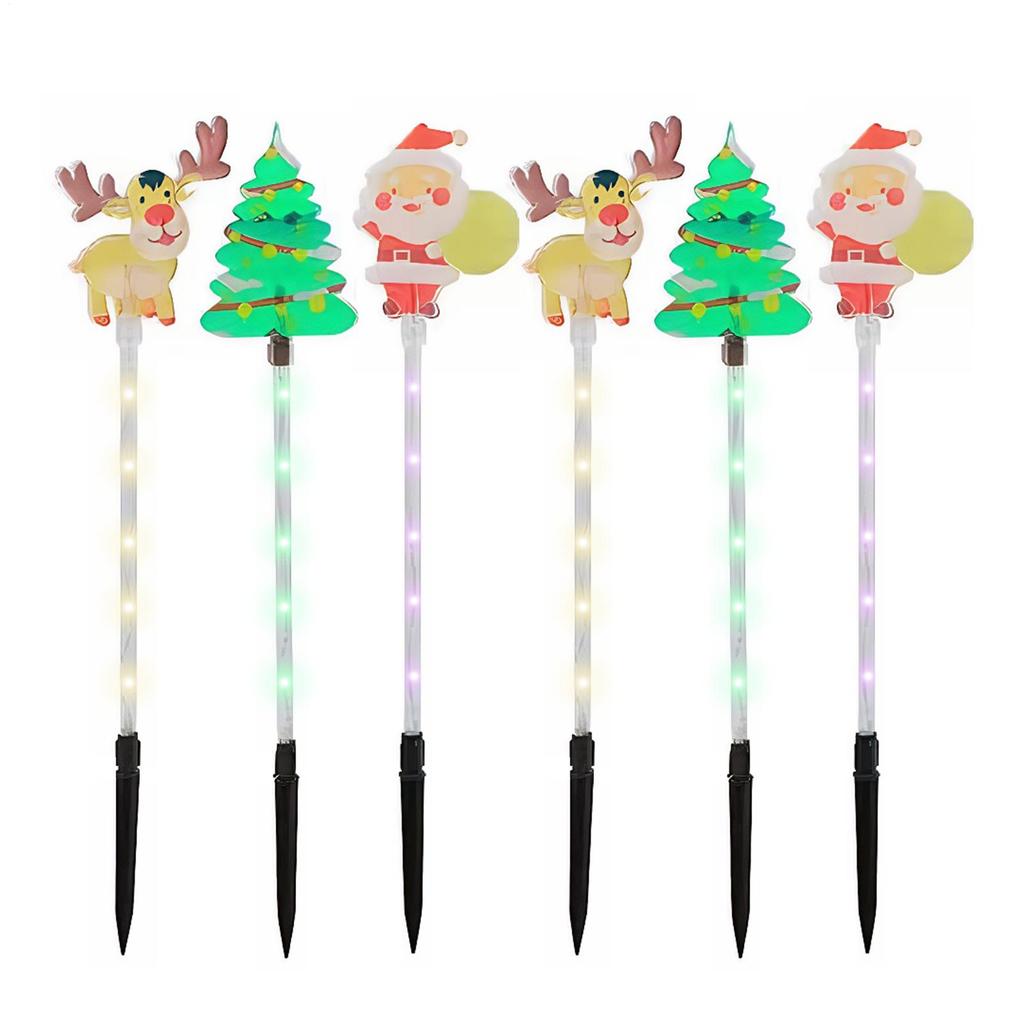 6PCS Movable Christmas Lights LED Waterproof Christmas Pathway Lights Santa Claus Ground Plug Lights For Porch Gardens Paths
