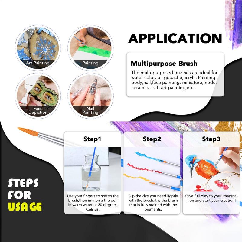 10 шт., набор кистей для рисования, художественные круглые плоские волосы, нейлоновая кисть для рисования волос, ручка для масла, акрила, акварели, школьные художественные принадлежности