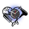 Инструменты для парикмахерской Виниловая настенная пластинка Часы Салон красоты для волос Сердце Форма Фен Ножницы Расческа Дизайн парикмахера Бесшумные часы