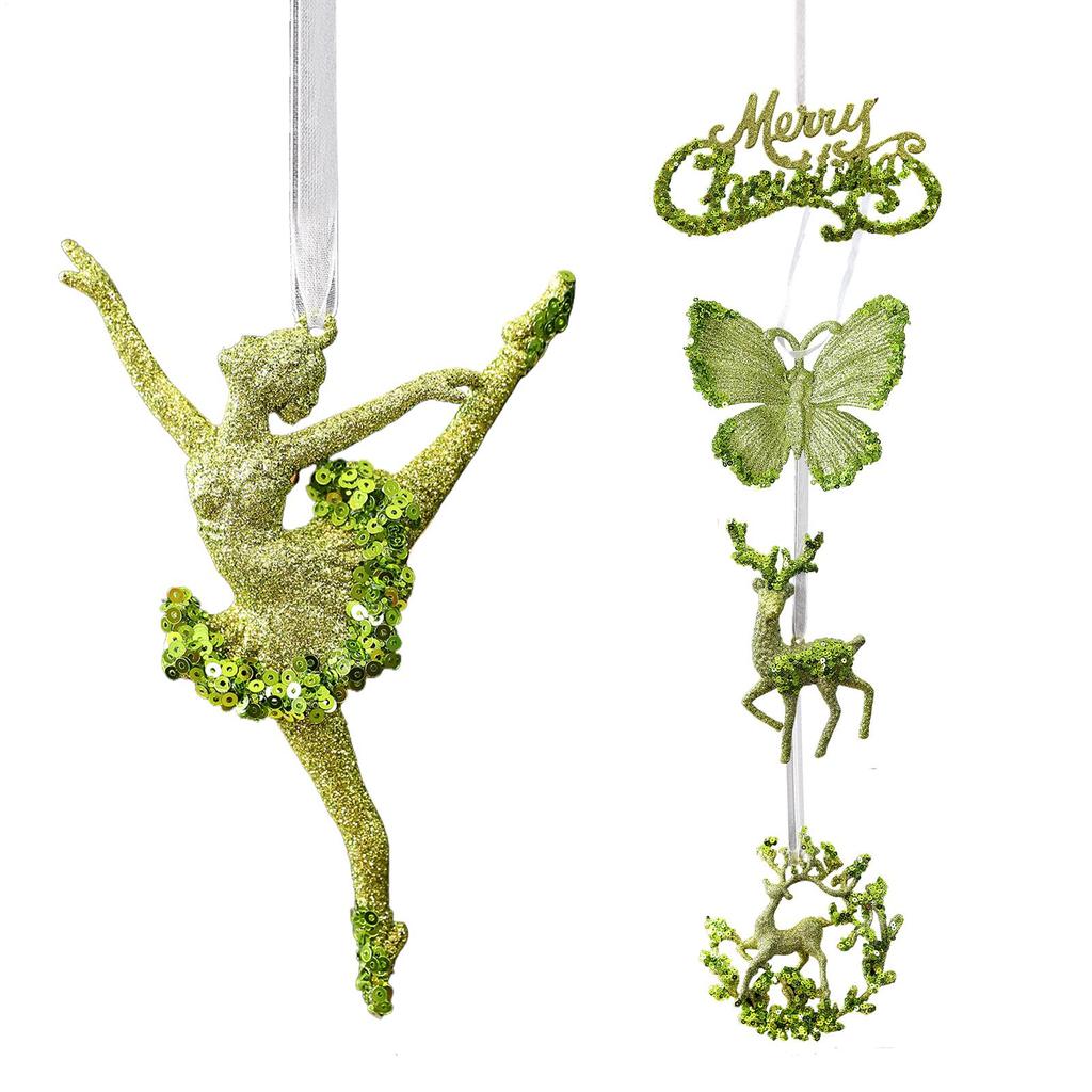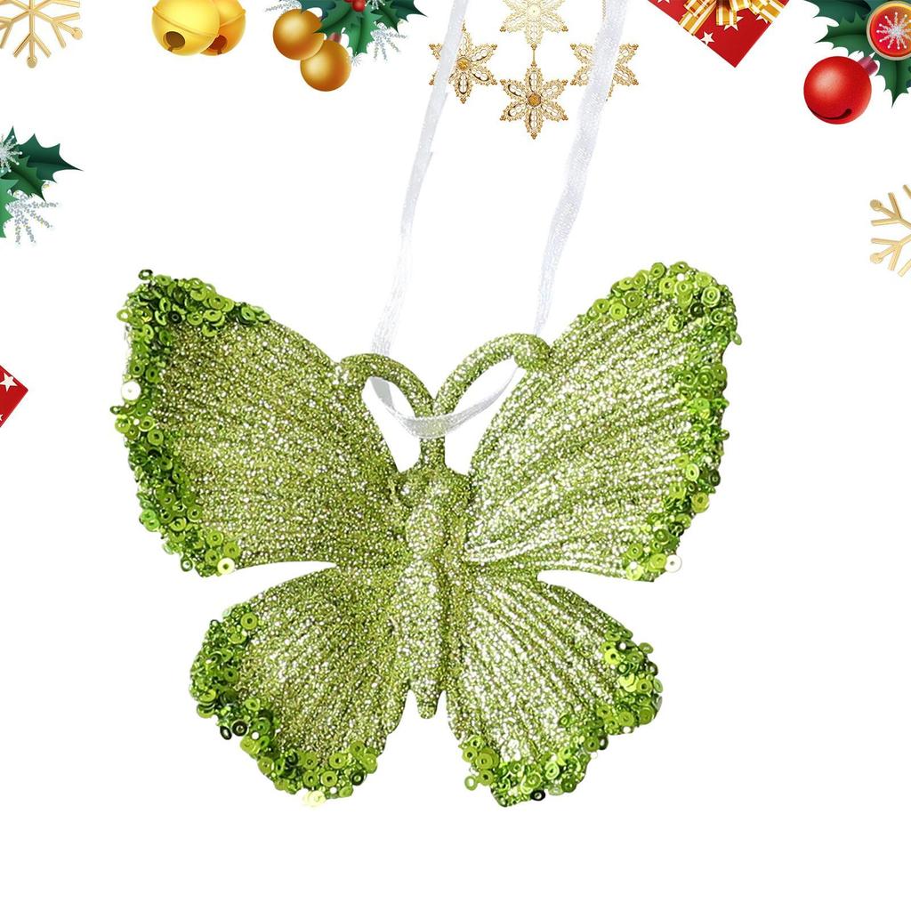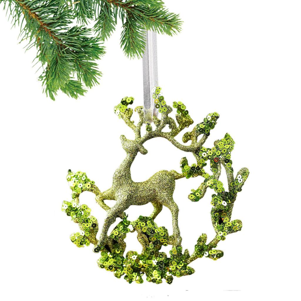 3D Lightweight Festive Green Glitter Detail Pendant PC Christmas Tree Snowflake Ornaments For Indoor Home Living Room Wall