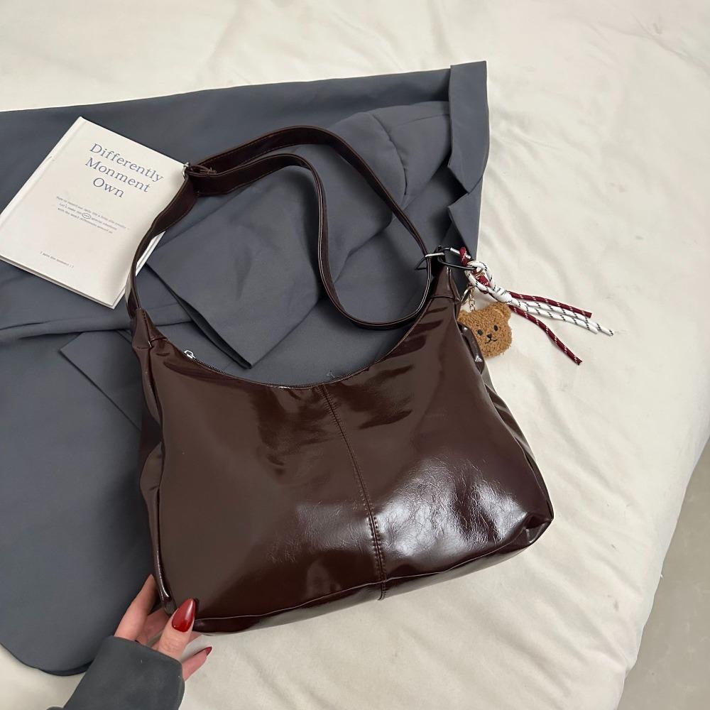 With Pendant Hobo Bag Korean Style Women's Handbag Simple PU Leather Shoulder Bag Lady