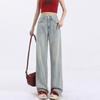 Стирка джинсы женские весна и осень 2025 новые с высокой талией и тонкими задними карманами вышитые широкие брюки прямые брюки