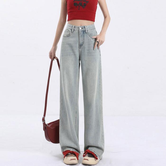 Стирка джинсы женские весна и осень 2025 новые с высокой талией и тонкими задними карманами вышитые широкие брюки прямые брюки — купить товар онлайн с бесплатной доставкой по всему миру!