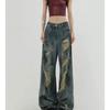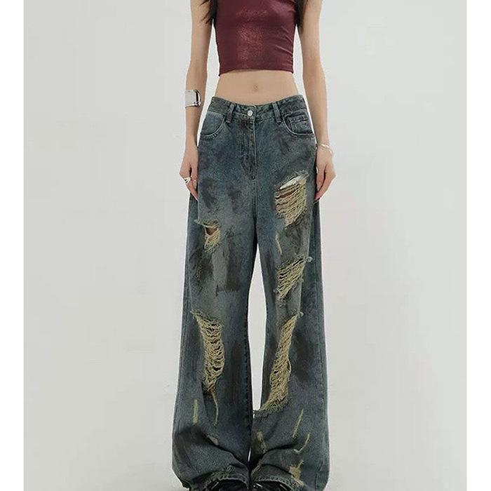 Ретро рваные джинсы в стиле постапокалипсиса женские весенне-летние новый дизайн высокая талия и тонкие большой размер широкие штанины до пола