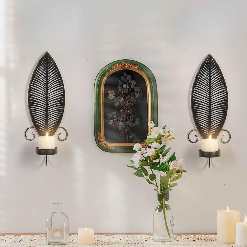 2pc Set Wrought Iron Leaves Wall Mounted Candle Holder European Retro Home Decoration Living Room Doorway Courtyard Ornaments