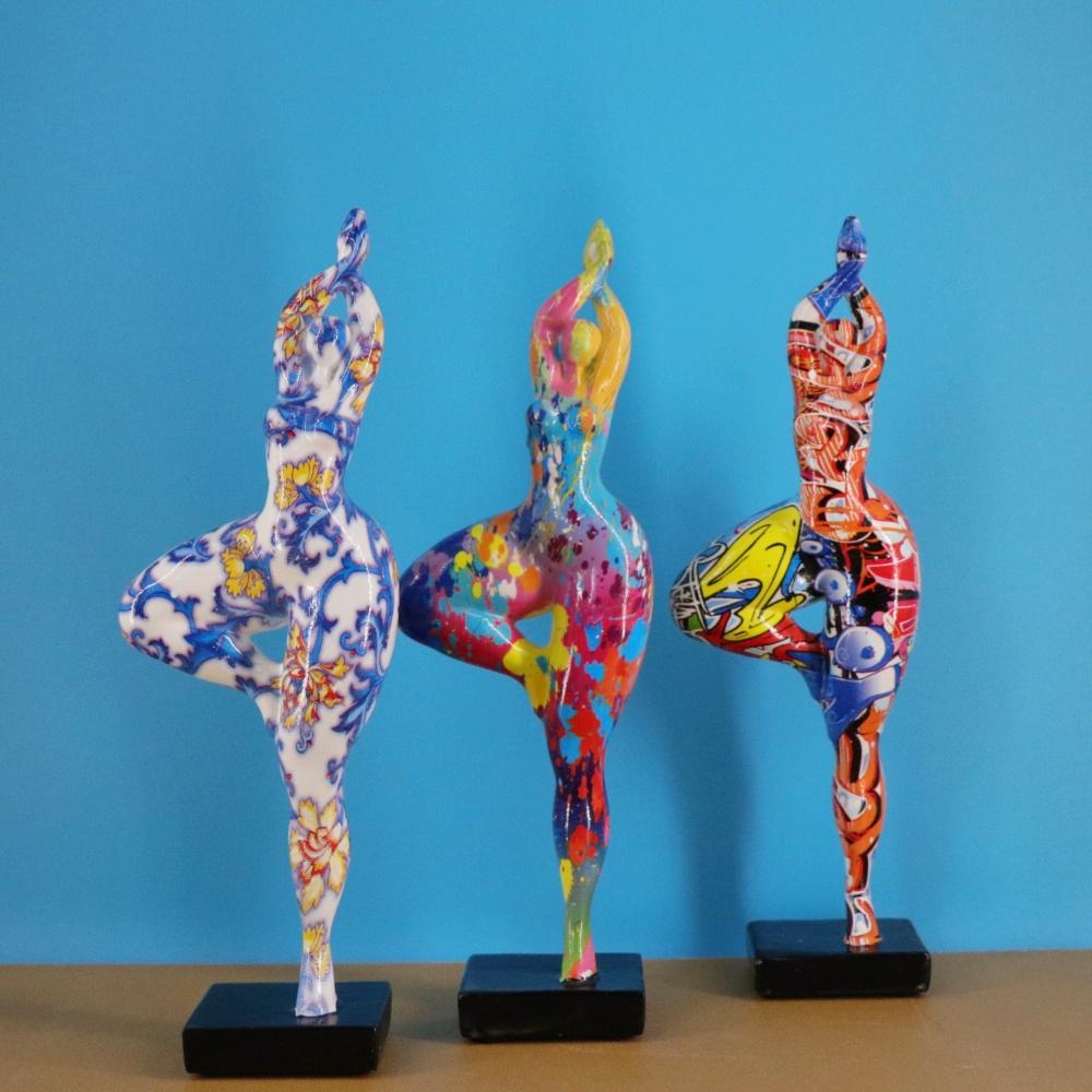 Граффити Йога Леди Фигурки Цветные Абстрактные Танцующая Сексуальная Женщина Скульптура Смоляная Фигура Статуэтка Декор для Дома Гостиной Рабочего Стола — купить товар онлайн с бесплатной доставкой по всему миру!