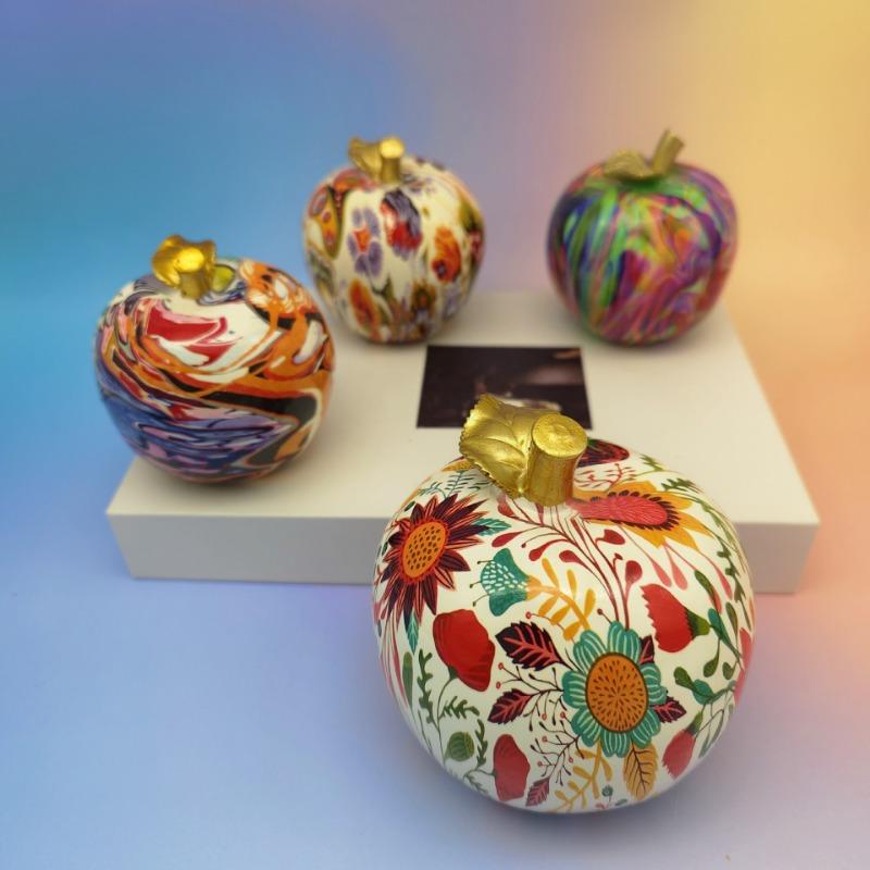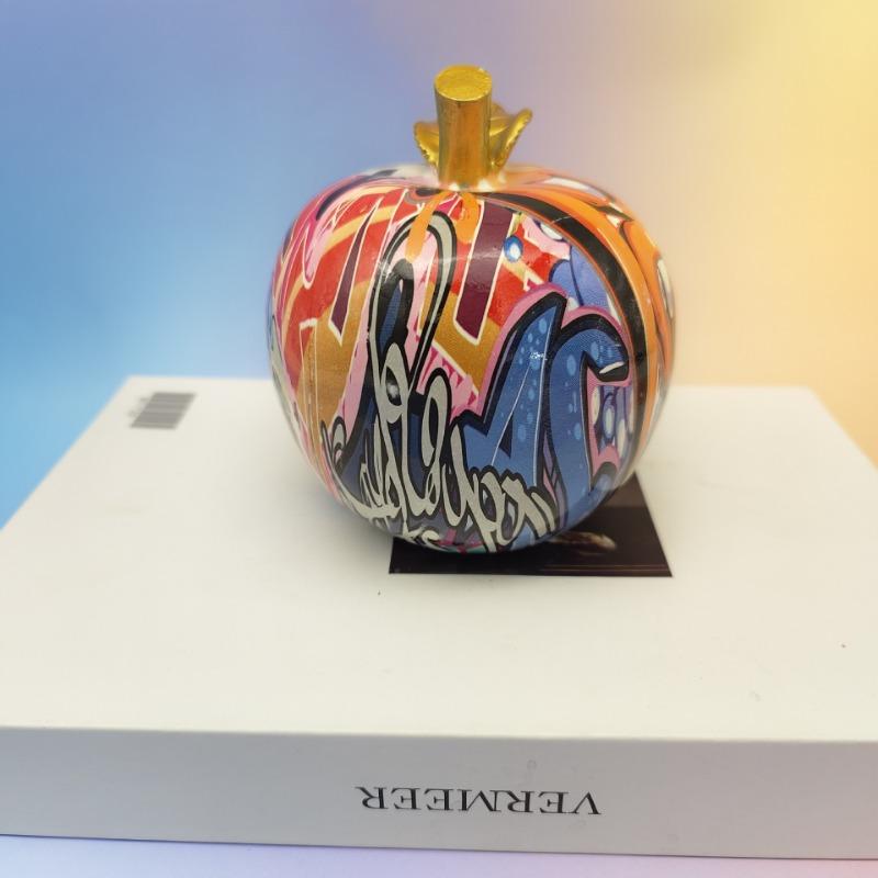 Creative Graffiti Apple Figurines Colorful Painting Art Fruit Resin Sculpture Nordic Modern Home Decor Interior Desktop Ornament