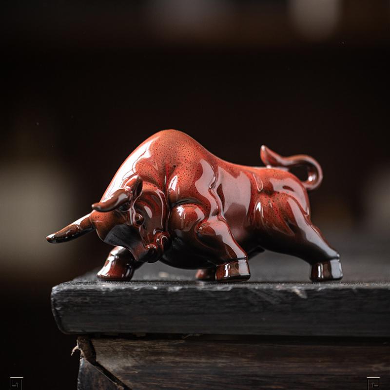 Керамическая статуэтка быка для корриды, бык, Уолл-стрит, скульптура скота, офисный декор фэн-шуй, настольная, книжная полка, фигурка животного, украшения
