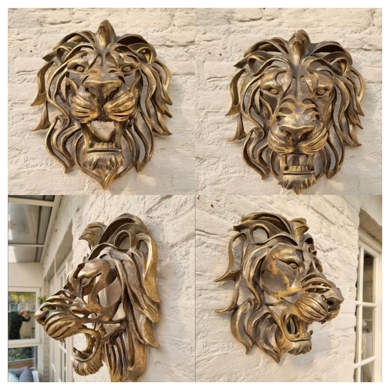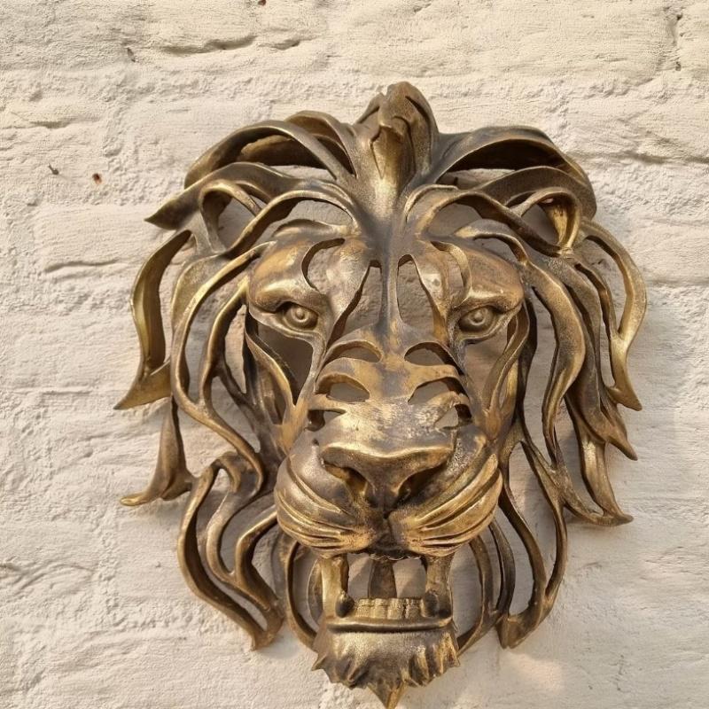 Смола Голова Льва Настенное Украшение Золотая Ажурная Голова Льва Художественная Скульптура Домашний Декор для Прихожей у Двери Стена Забор