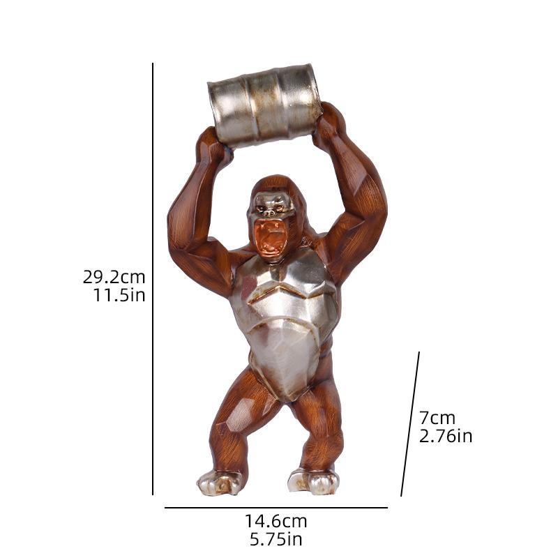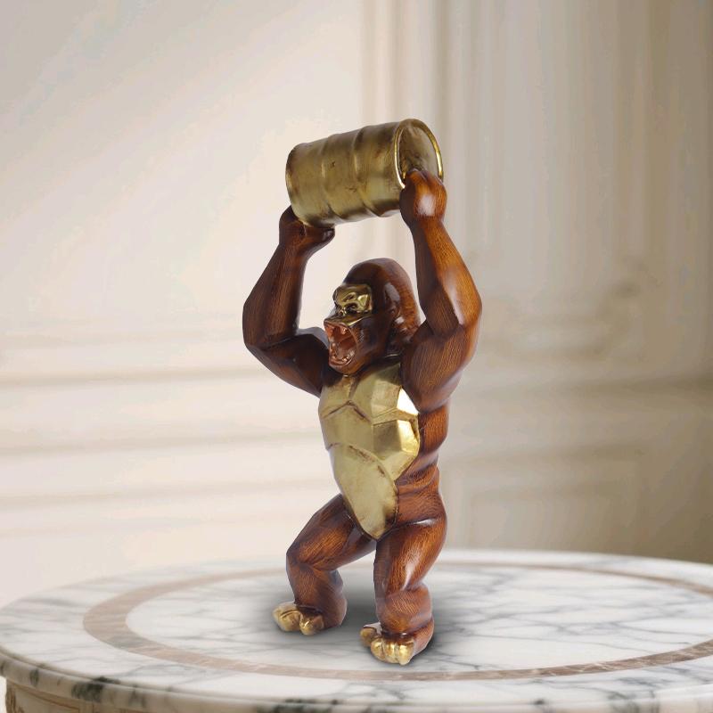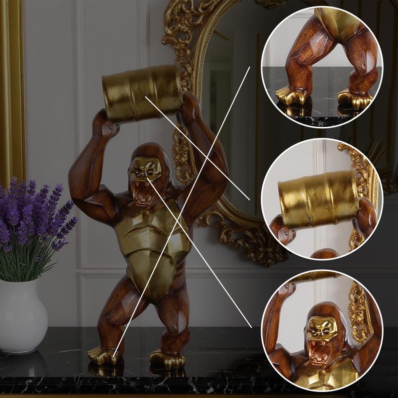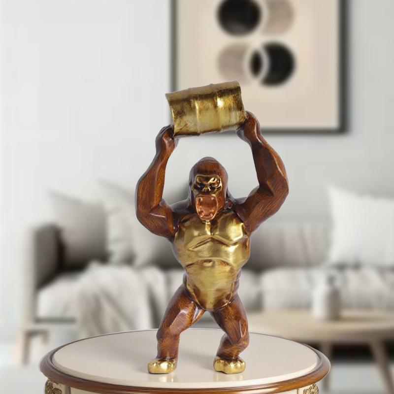 Wood-grain Gorilla Sculpture Resin Animal Sculpture Decorative Piece for Home, Bedroom, Living Room, Study, and Counter