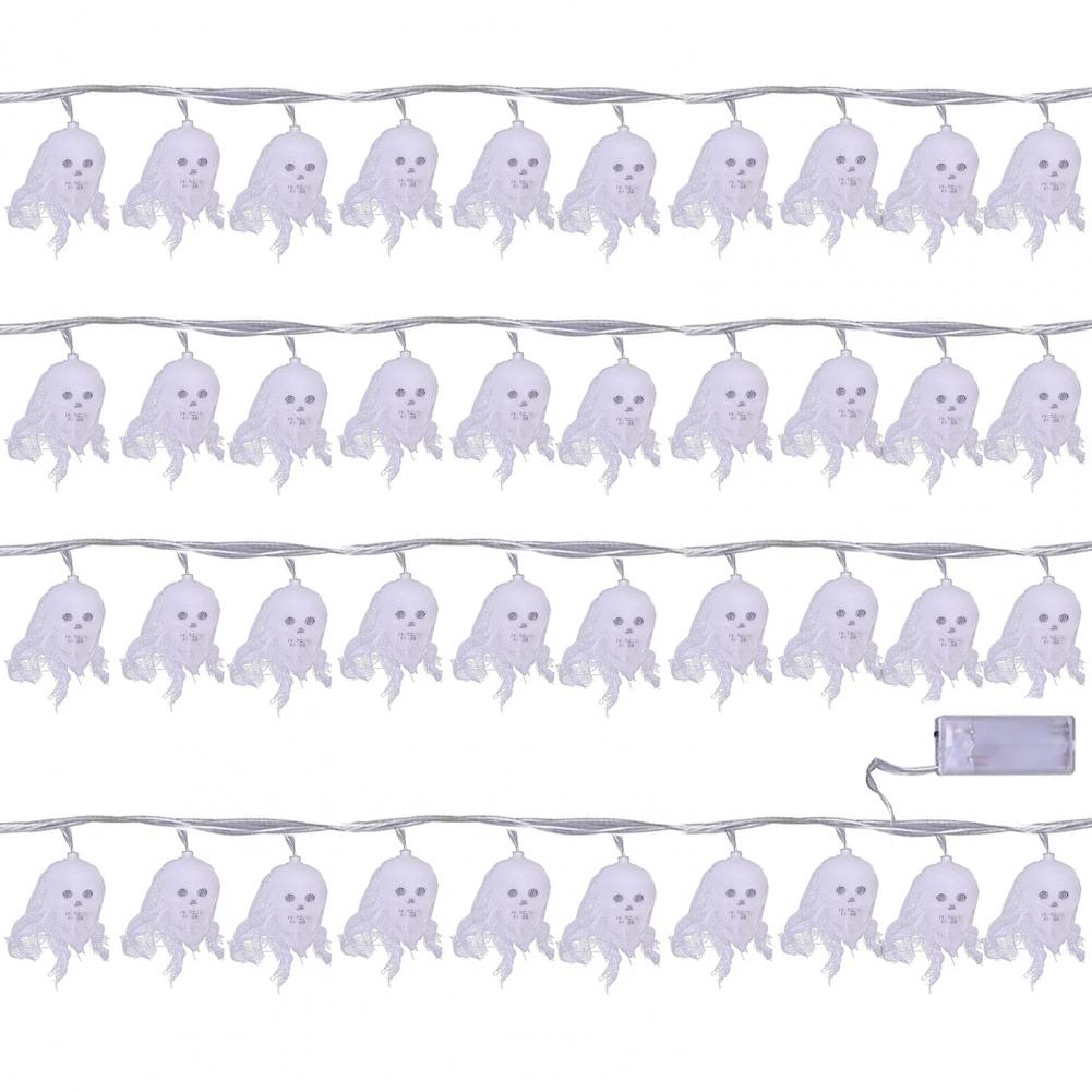 Enhance your Halloween celebrations with these skull-shaped string lights! Powered by two AA batteries (not included), these lights are versatile for both indoor and outdoor use.