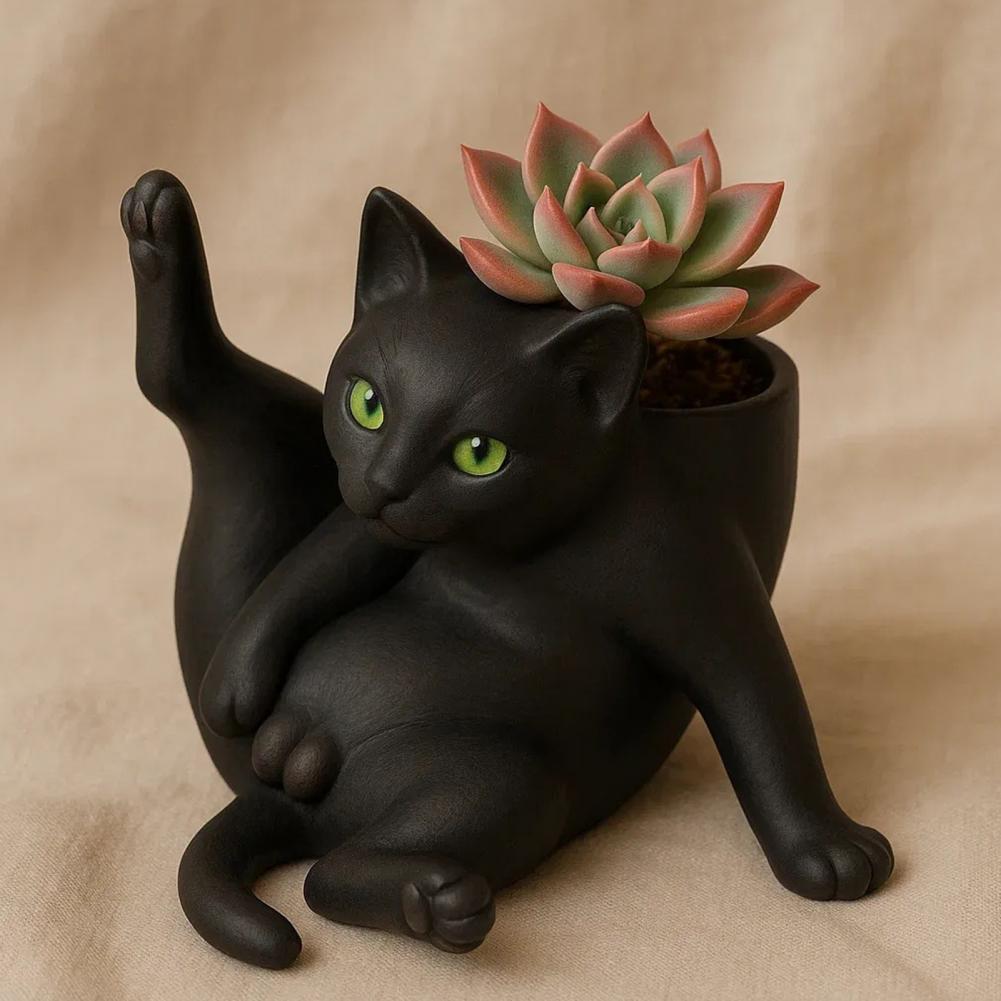 Причудливый кошачий компаньон: Примите игривый дух с этим цветочным горшком на кошачью тематику, в котором изображен очаровательный кошачий друг.. Идеально подходит для столов, подоконников или полок, он привносит радость и характер в ваше окружение, создавая причудливую фокусную точку, вызывающую улыбки.