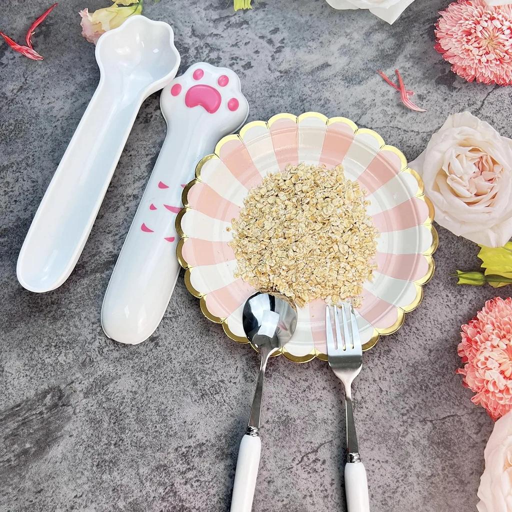 Stainless Steel Spoon and Fork Set with Storage Box Portable Tableware Cute Cat Paw Shaped Dinnerware Kit for Adults Kids School