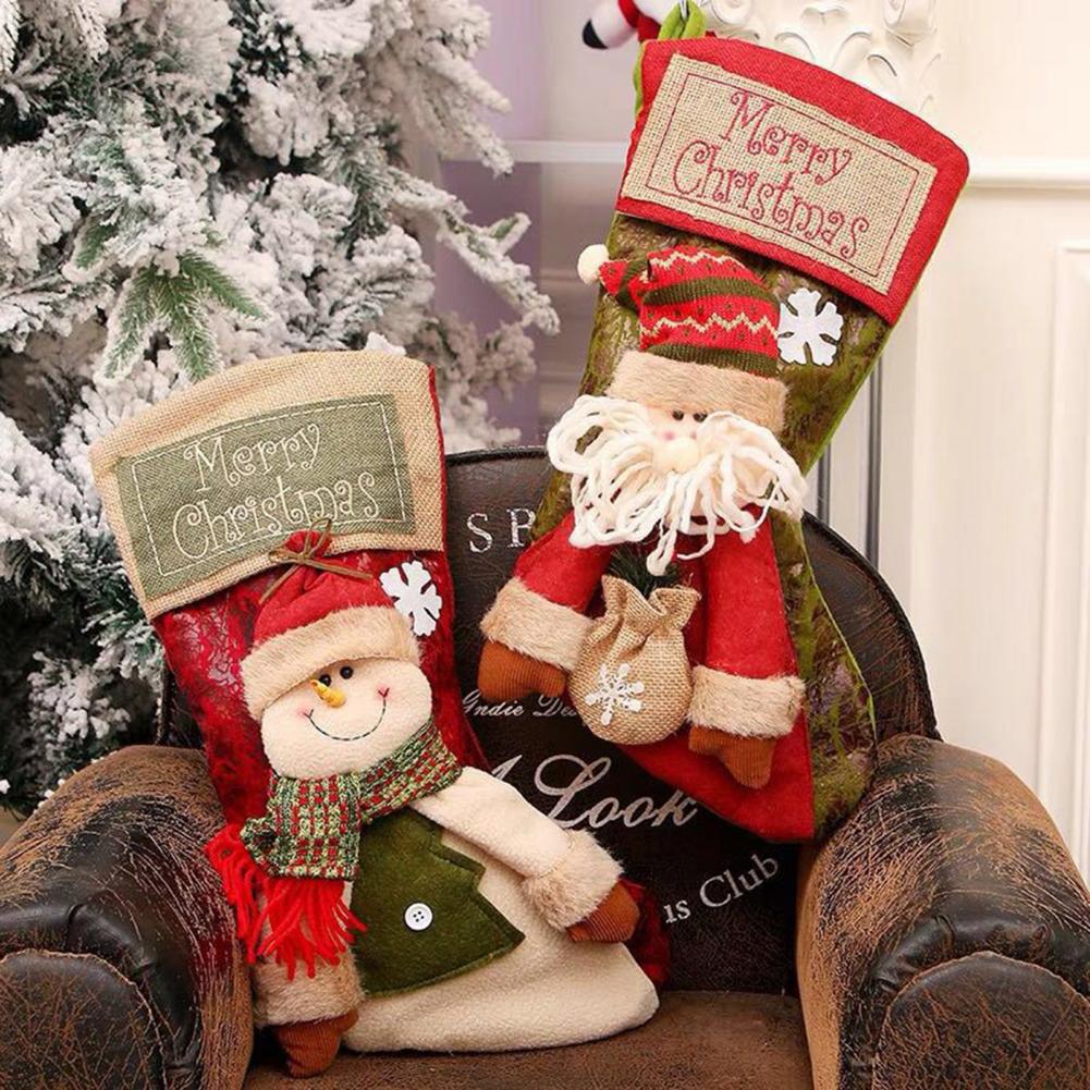 Good luck with your favorite purchases18" Christmas Stocking 3D Plush Santa Snowman Reindeer Design Hanging Burlap Stocking for Farmhouse Holiday Decor