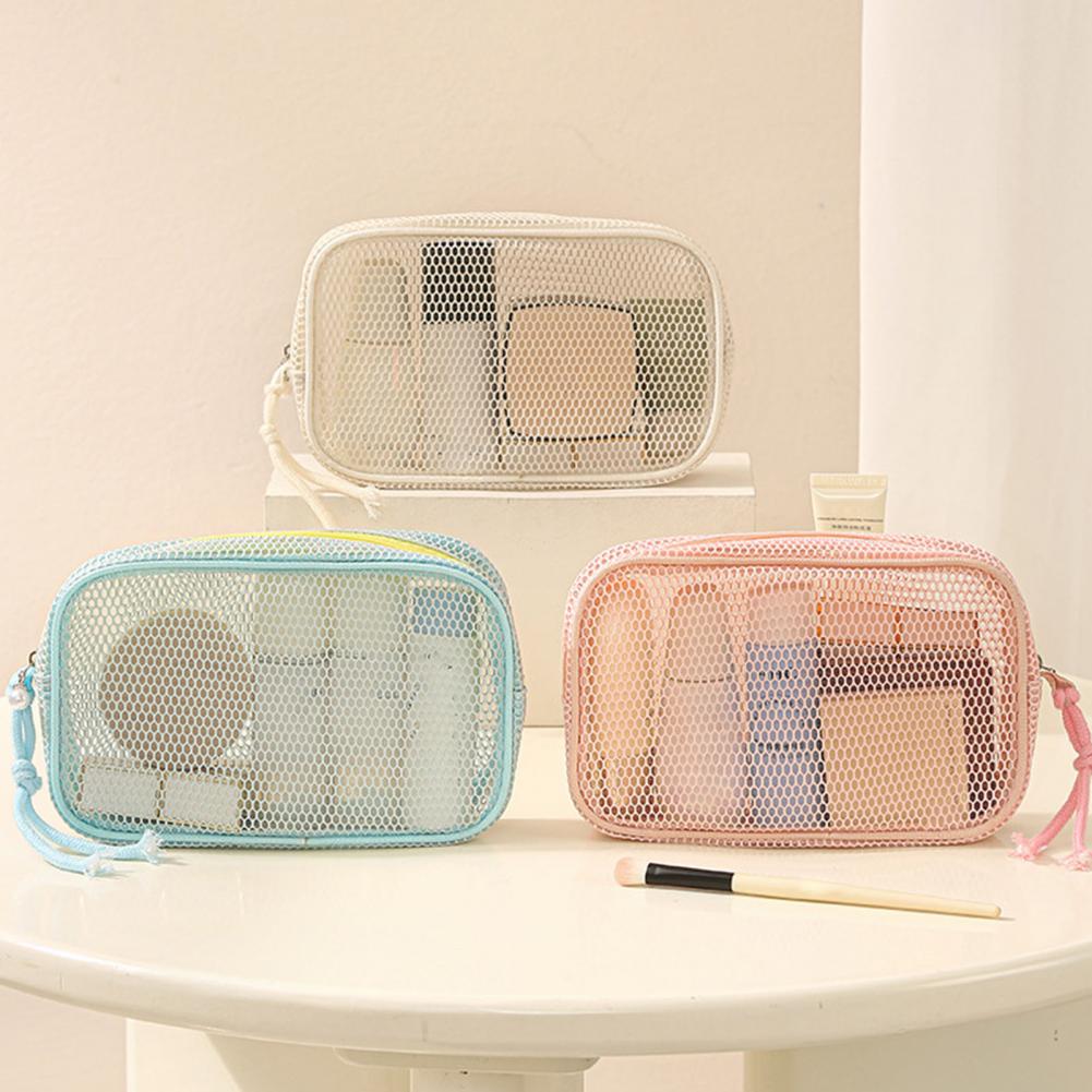 Makeup Pouch Mesh Cosmetic Bag Travel Makeup Organizer Breathable Zippered Toiletry Pouch with Lanyard Portable Storage Pouch