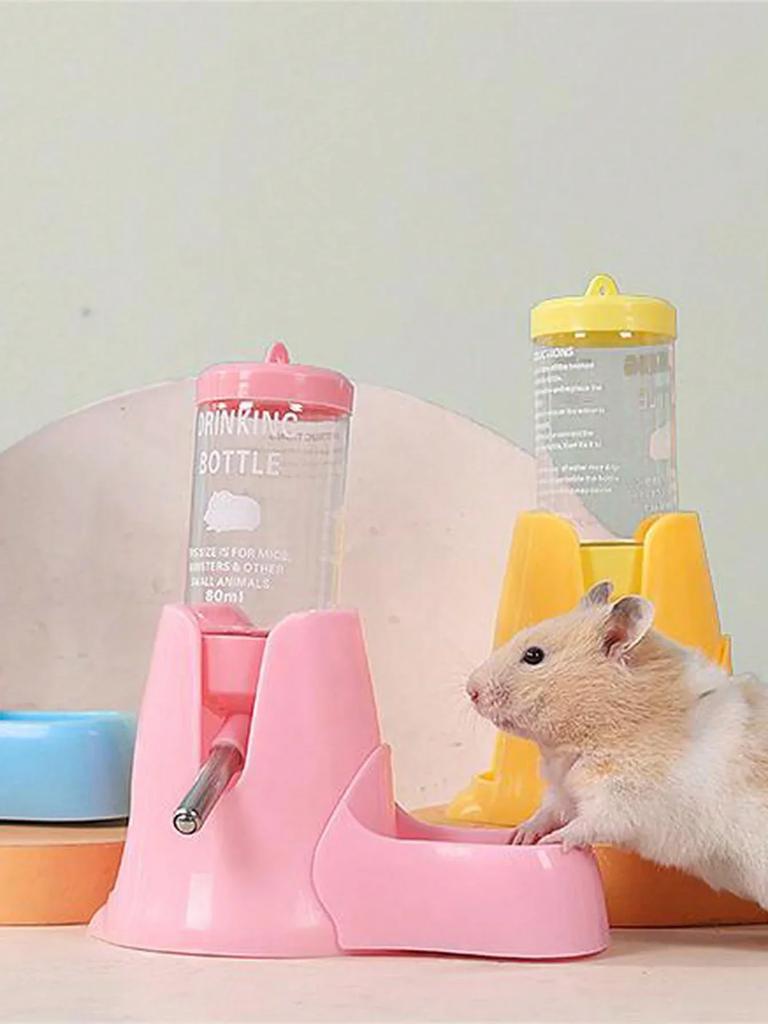 Hamster Water Feeder Small Animal Automatic Dispenser Drinking Water Bottle Bowls Dish with Food Container for Guinea Pig Rat