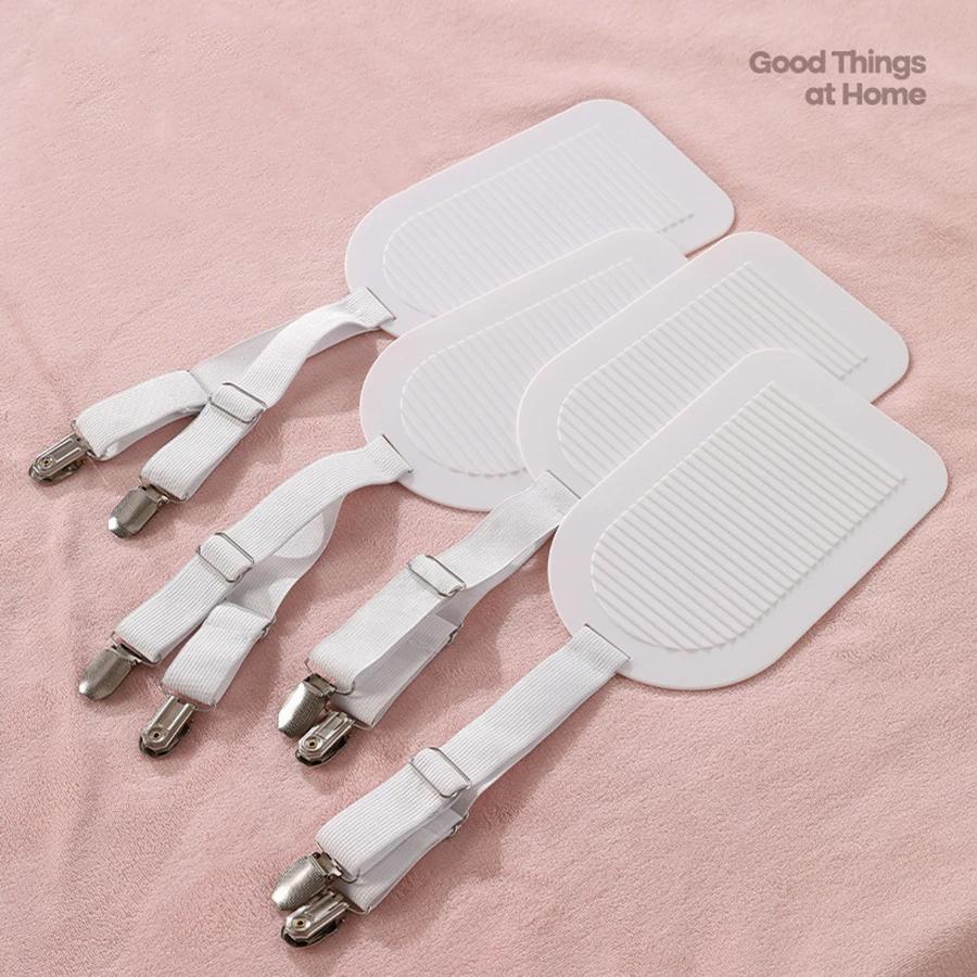 Зажимы для простыней Регулируемые ремни-держатели для простыней Набор из 4 штук Эластичные зажимы для натяжных простыней Крепежи для дома, отеля Удаление шерсти