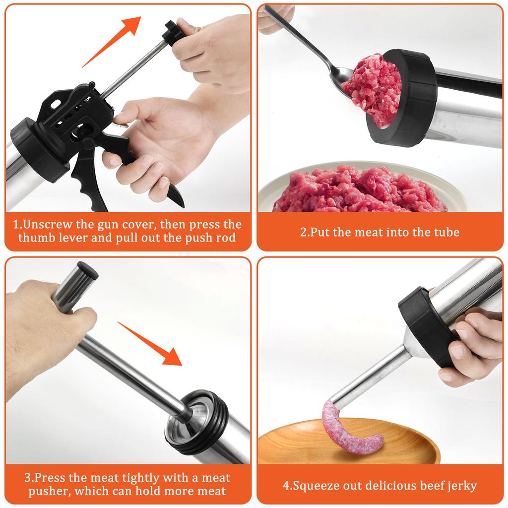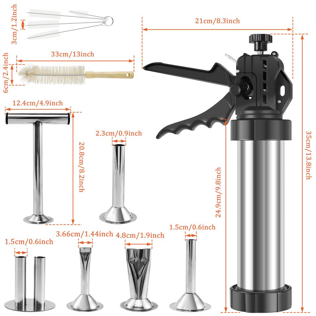 Sausage Stuffer Maker Machine Stainless Steel Sausage Jerky Maker with 5 Nozzles Brushes Meat Pusher for Kitchen Cooking Tools