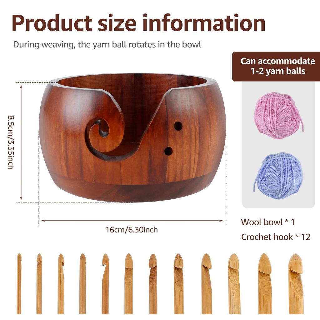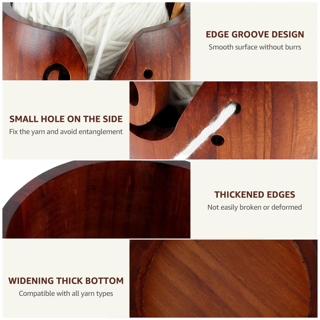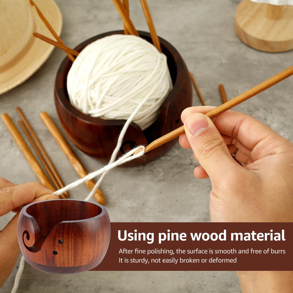 Держатель для клубка пряжи с 12 шт. крючков для вязания, деревянная чаша для пряжи с дизайном канавок для завивки, чаша для вязания, гладкий держатель для клубка пряжи