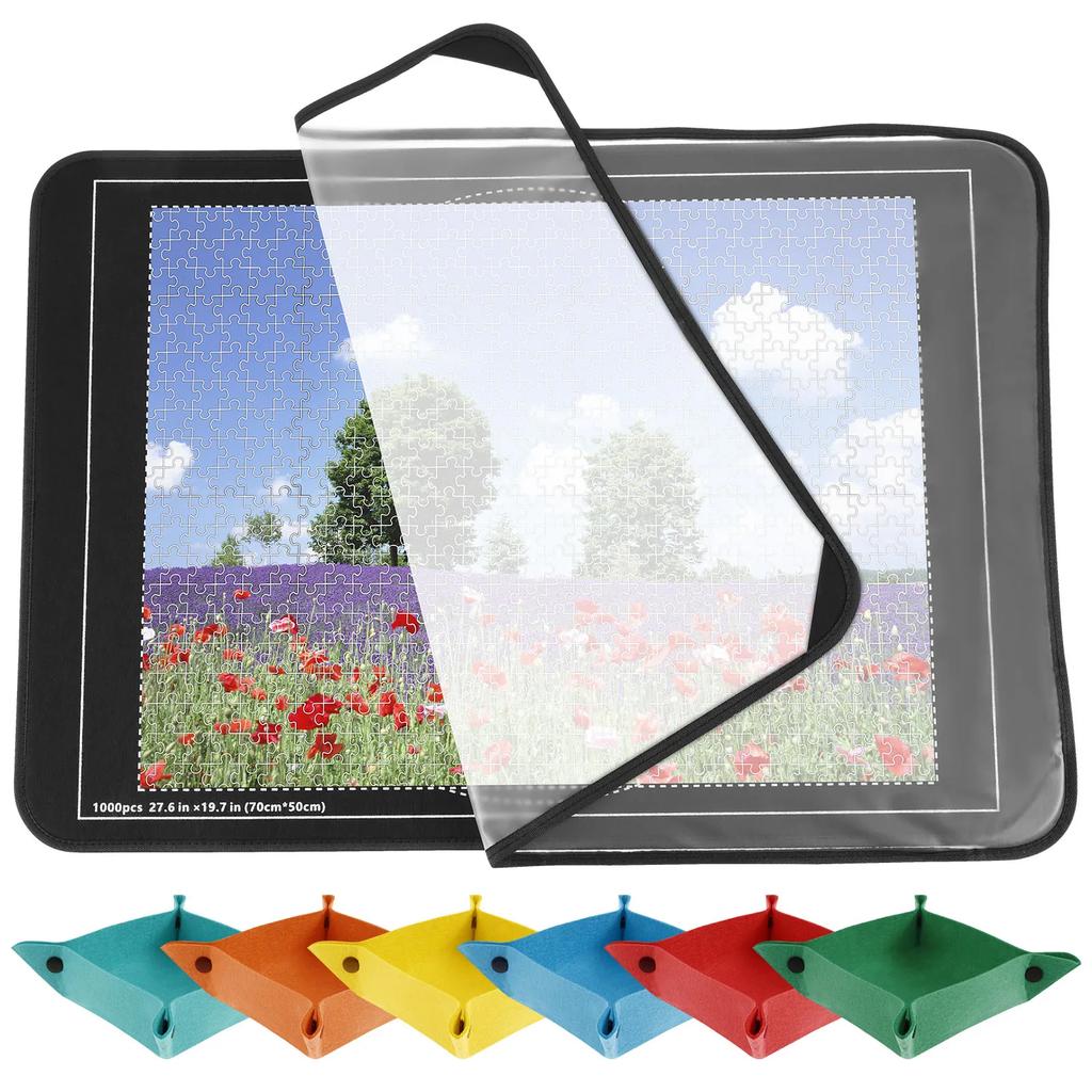 Набор ковриков для пазлов, легко хранить, универсальная доска для пазлов с лотком для сортировки, прочный пыленепроницаемый лоток для сортировки пазлов для ваших детей