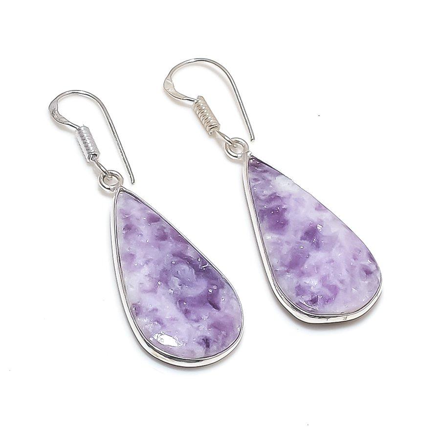 Natural Lepidolite Gemstone 925 Sterling Silver Jewelry Earring 1.89" AE-9900