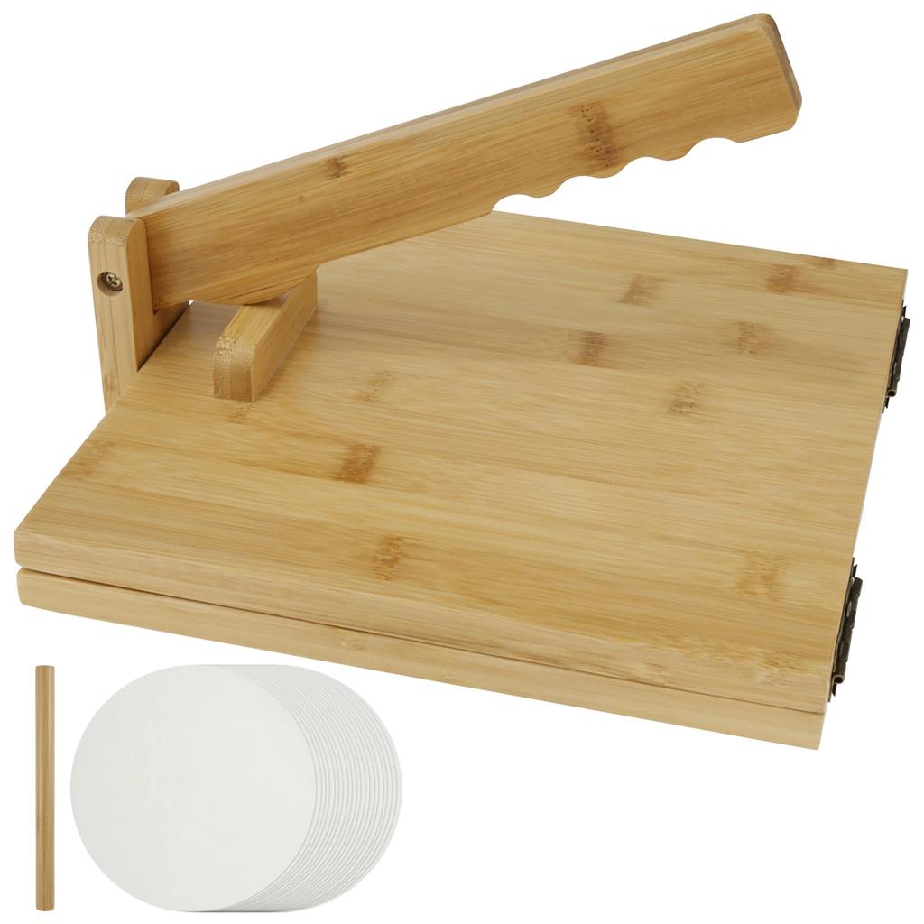 Бамбуковая пресс-форма для тортильи 10 дюймов Ручная квадратная машинка для приготовления тортильи со скалкой Вращающаяся мексиканская тортильера Инструмент для прессования теста