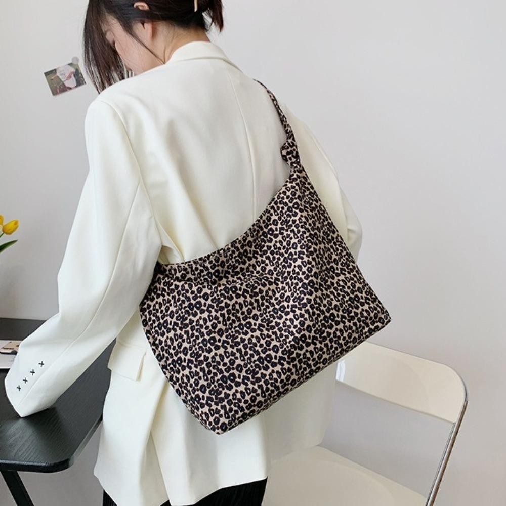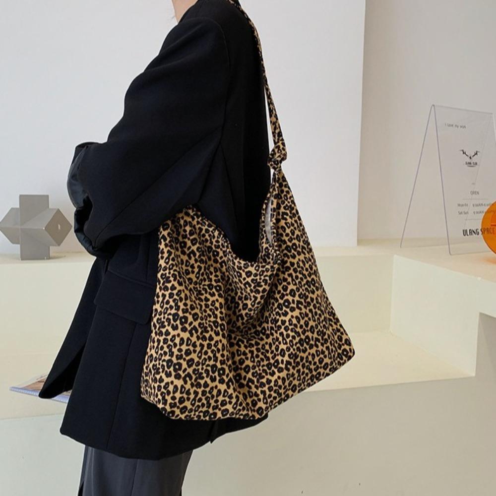 Cloth Canvas Bag Korean Style Women's Handbag Fashion Leopard Print Shoulder Bag Shopping
