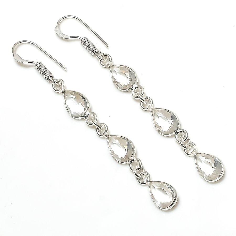 Natural White Topaz Gemstone Handmade 925 Sterling Silver Earring 2.56" AE-3622