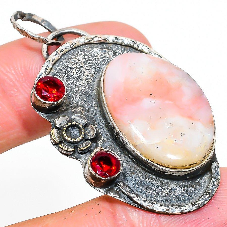 Natural Pink Opal, Garnet Gemstone 925 Sterling Silver Pendant 2.05" MP-618