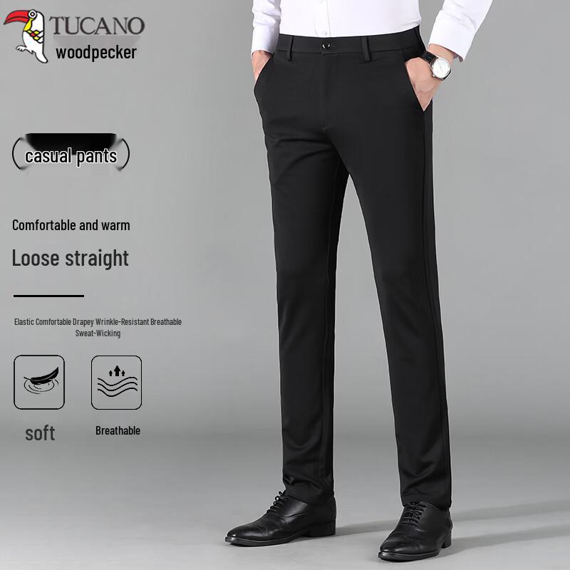 TUCANO Men's Wrinkle-Resistant Straight-Leg Dress Trousers