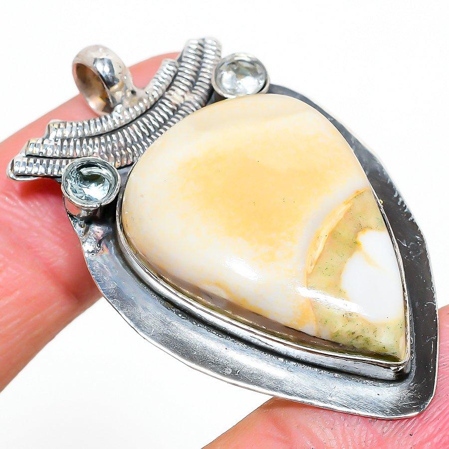 Natural Mud Crack Fossil, Topaz Gemstone 925 Sterling Silver Pendant 2.01" MP-1669
