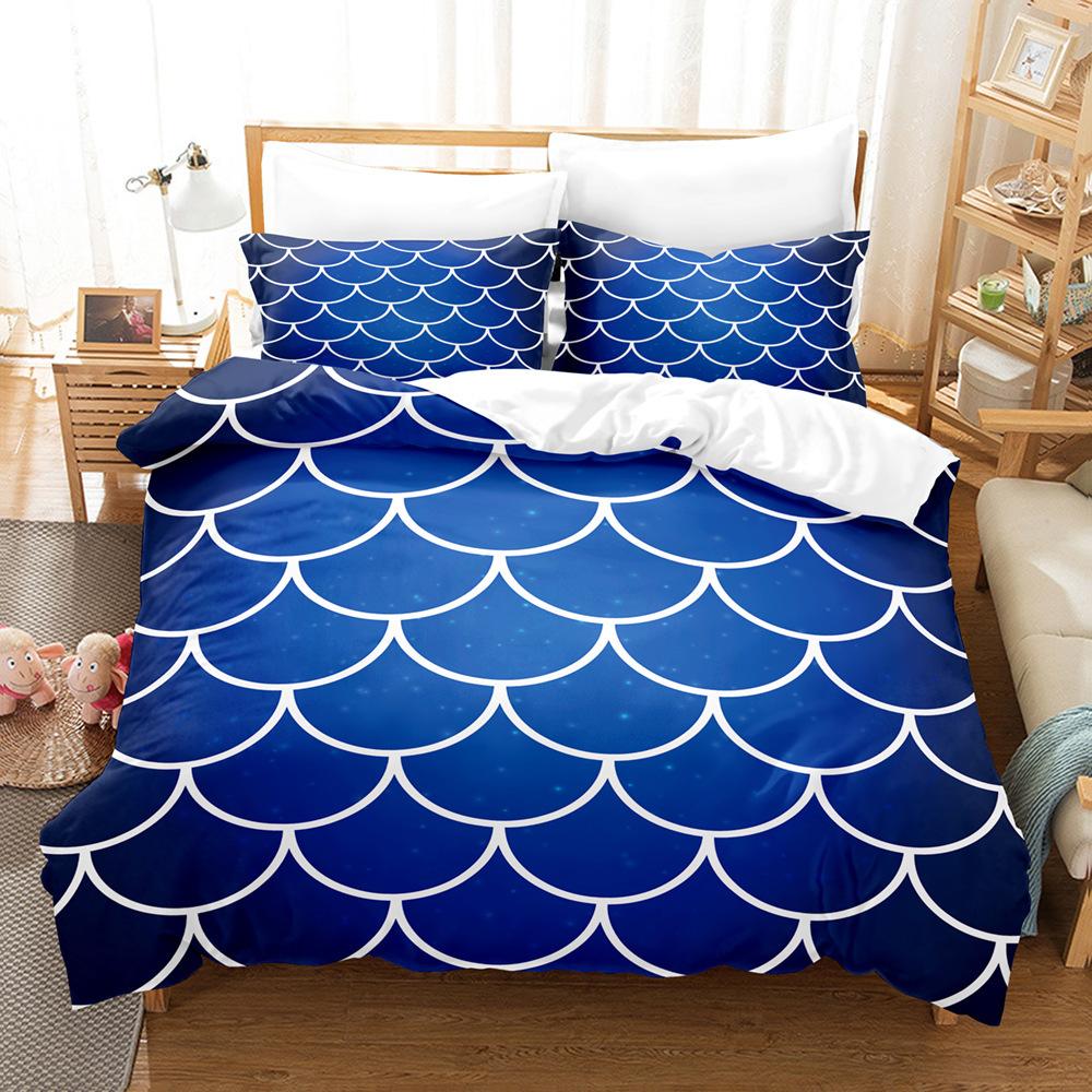 Laser Gradual Change Fish Scale 3D Digital Printing Three-Piece Set, Quilt Cover Pillowcase