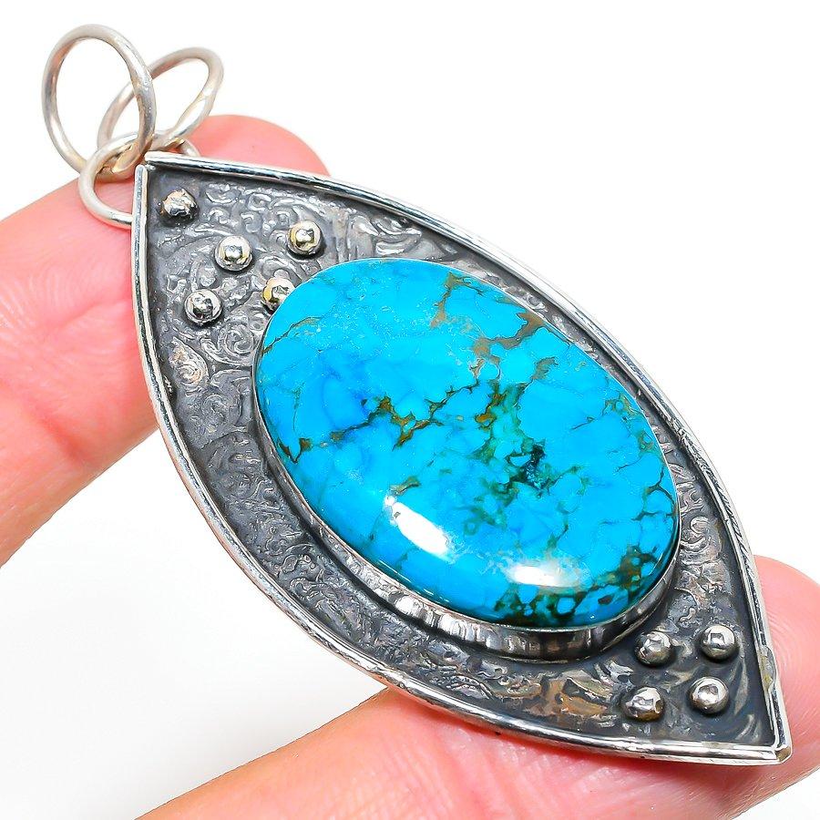 Natural Tibetan Turquoise Gemstone 925 Sterling Silver Pendant 2.96" MP-1818