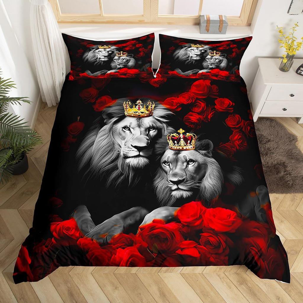 3D лев рисунок цифровая печать комплект из трех предметов животное пододеяльник простыня постельное белье