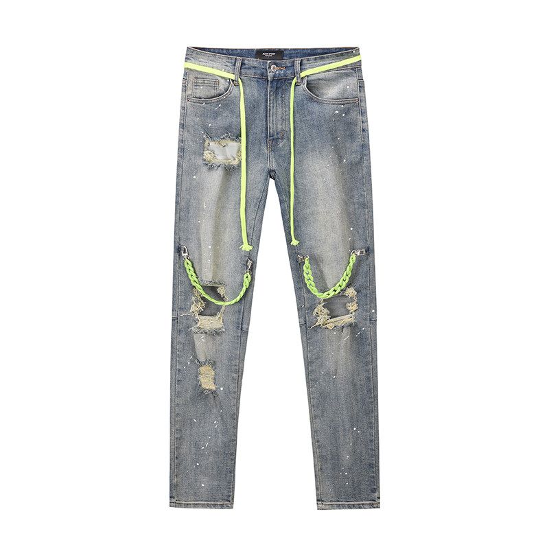 European and American High Street Style Chain-Decorated Slim-Fit Stretch Skinny Jeans Ins Trendy Rap Hip-Hop Drawstring Pants
