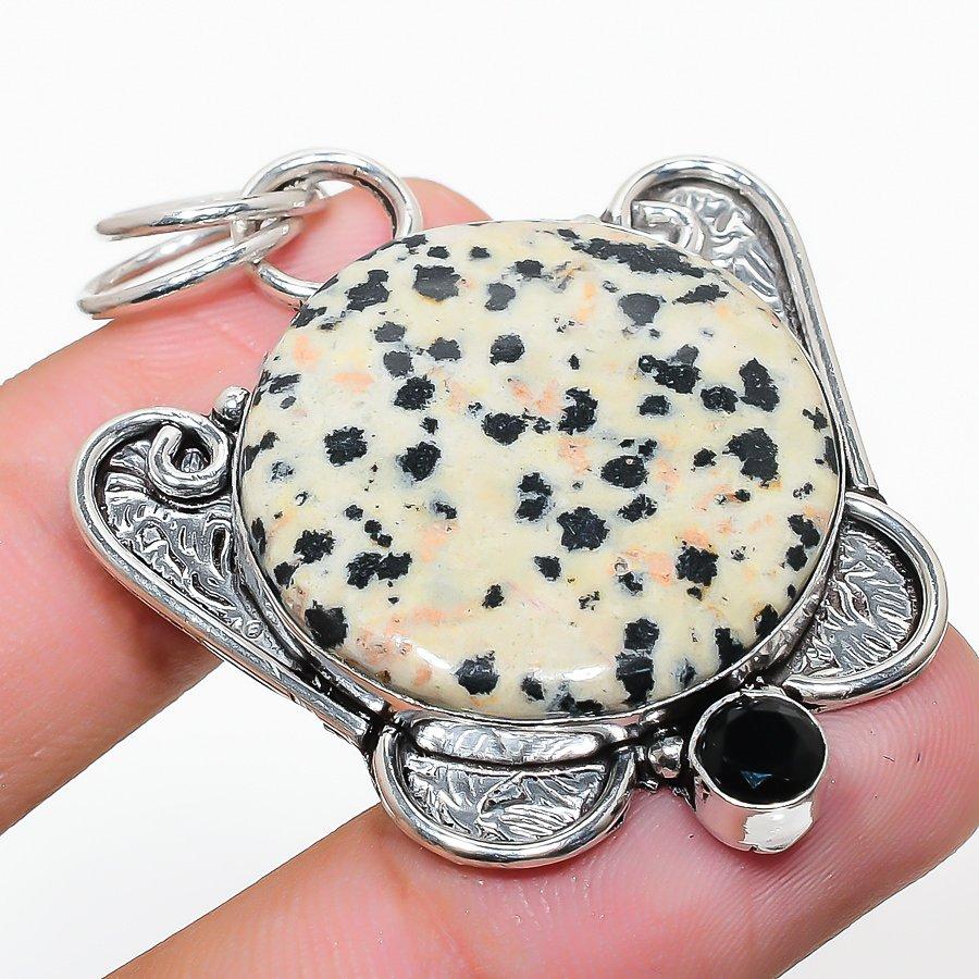Natural Dalmation Jasper, Spinel Gemstone 925 Sterling Silver Pendant 2.01" AP-2427