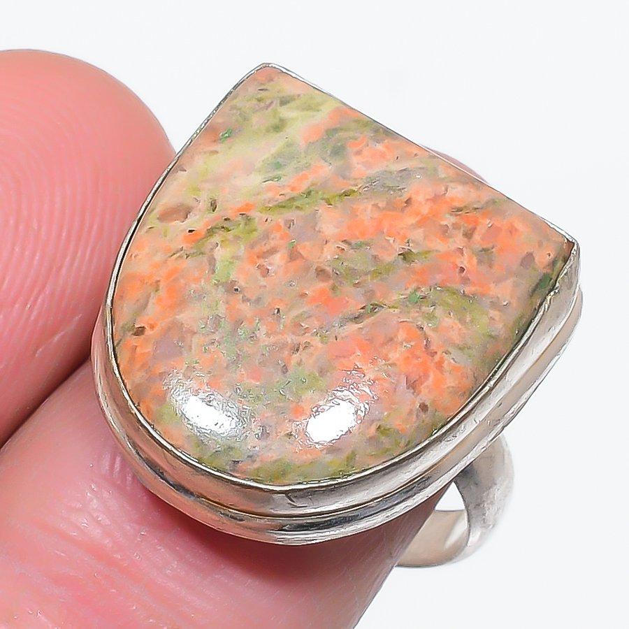 Natural Unakite Gemstone Handmade 925 Sterling Silver Jewelry Ring Size 9 AR-13610 — купить товар онлайн с бесплатной доставкой по всему миру!