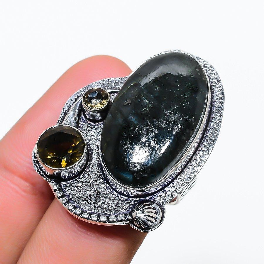Natural Labradorite, Topaz Gemstone 925 Sterling Silver Ring Size 5.5 AR-6721